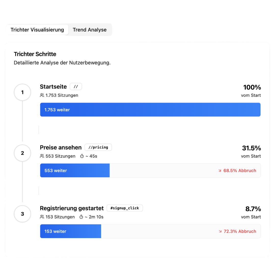 Plausible und Fathom sind hervorragend für einfaches Web-Reporting. bchic hingegen ist für Product-Teams gebaut. Wir bieten die Analysetiefe von Amplitude oder Posthog – inklusive komplexer Funnel-Analysen, Retention-Kohorten und detailliertem Event-Tracking –, jedoch mit dem Datenschutz-Fokus einer deutschen Cookieless-Lösung.