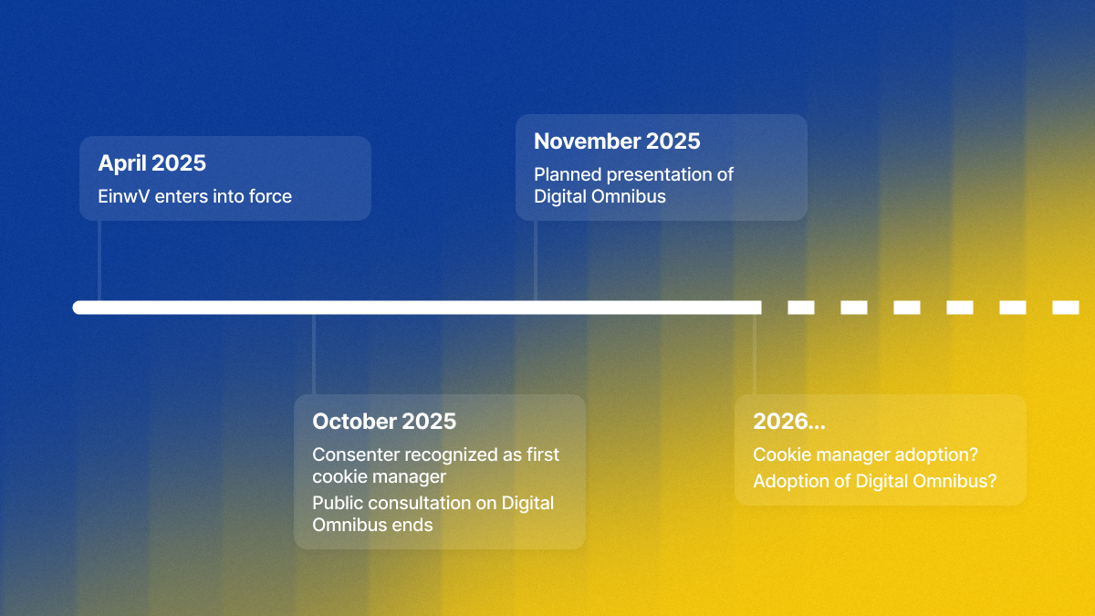 Then there's the crucial limitation: The EinwV isn't mandatory for website operators. Companies could ignore a cookie manager's signals and still ask users for consent on every visit. Consenter is recognized but still needs to prove itself in the market. Whether website operators will actually implement and respect the interfaces remains to be seen.